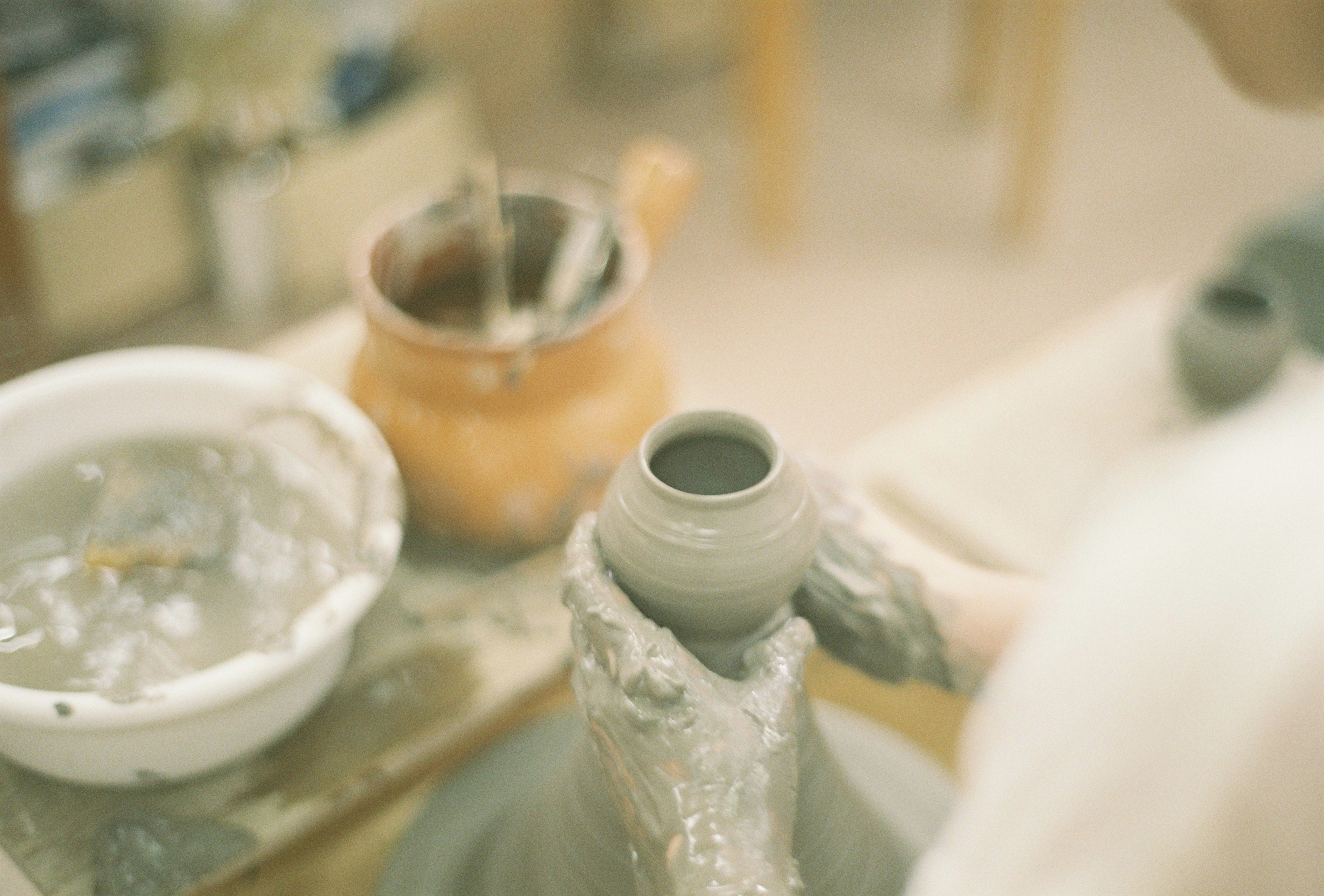土の粘り気、品種によって異なる質感や重みなど、初めて出合う土の世界。ろくろを回しながら、手のひら全体で包み込むように土の表情を作っていく。弱すぎず、強すぎず、土と仲良くなるように、丁寧に成形していくひとときを過ごした。